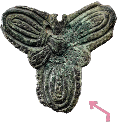 Fibel i bronze med blomstermotiv fra Vikingetiden.